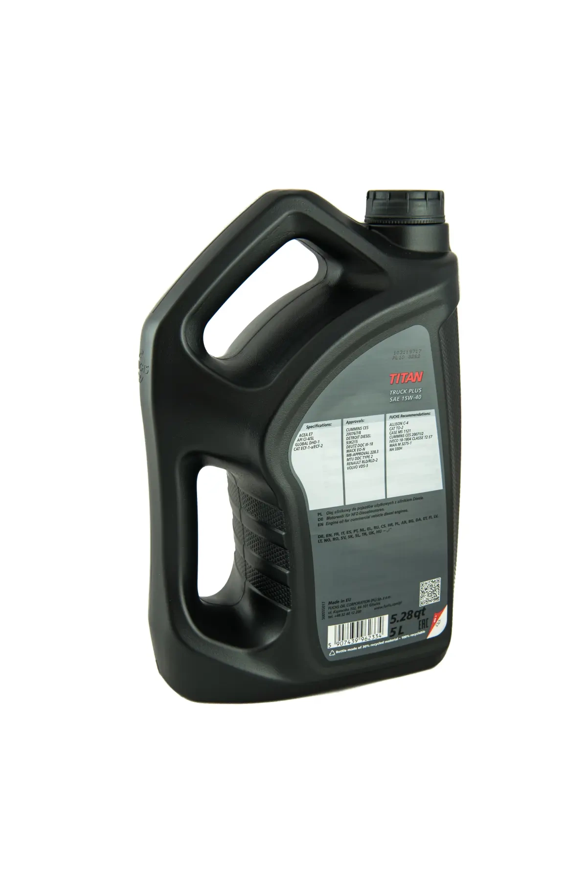 • Olej silnikowy Fuchs Titan Truck Plus 15W 40 to produkt o bardzo wysokiej jakości do stosowania w szerokiej gamie mocno obciążonych silników diesla i benzynowych w pojazdach użytkowych.
