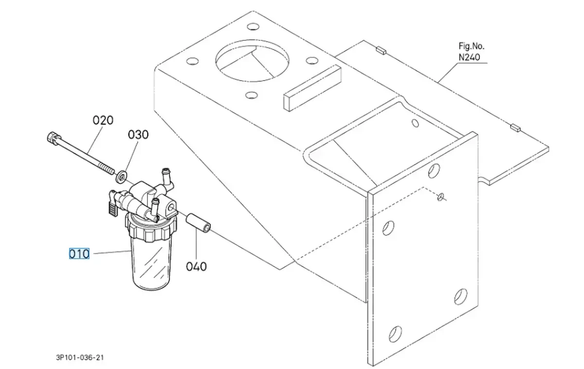 Separator filtra paliwa Kubota.