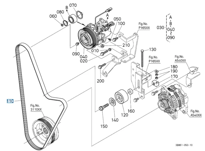 • Pasek klinowy do klimatyzacji i alternatora Kubota 3B86179320. Pasuje do ciągników Kubota M5071N, M5072N, M5091N, M5101N. Wysoka jakość od producenta Kubota. Części do ciągników Kubota.