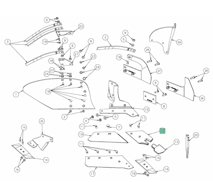 Uchwyt służy do szybkiego i pewnego zamocowania dłuta roboczego w pługu. System Quick Fit umożliwia błyskawiczną wymianę elementów roboczych bez użycia specjalistycznych narzędzi, minimalizując przestoje podczas prac polowych. Solidna konstrukcja o grubości 12 mm zapewnia niezawodny transfer sił podczas uprawy oraz długą żywotność nawet w najtrudniejszych warunkach glebowych. Precyzyjne dopasowanie do korpusów 25, 28 i 29 gwarantuje optymalne działanie całego systemu ornego, zwiększając efektywność pracy w gospodarstwie. Szerokość 65 mm zapewnia stabilne osadzenie i równomierne rozłożenie sił roboczych podczas orki w różnorodnych typach gleb - od lekkich piaszczystych po ciężkie gliniaste.